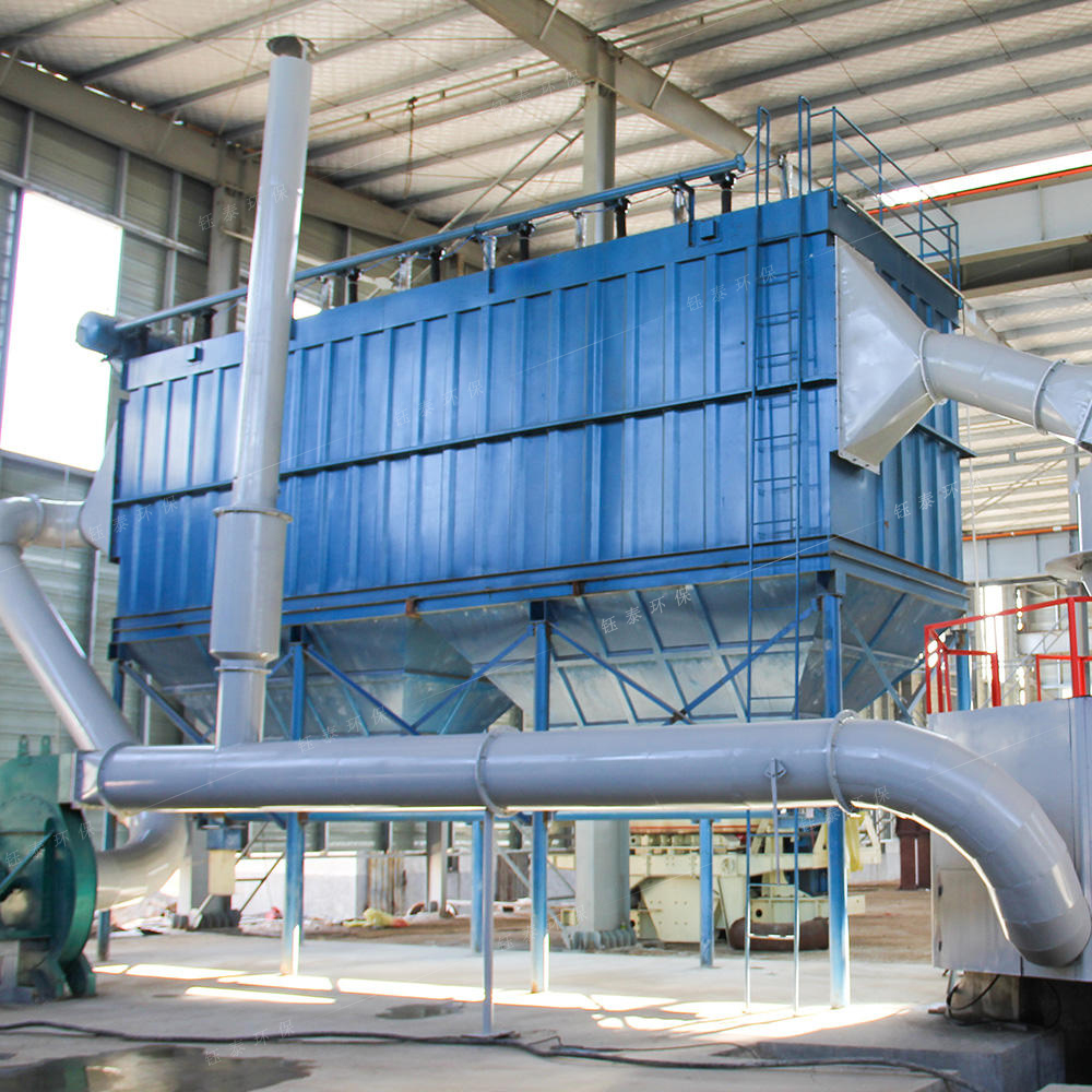 出磨的碳酸鈣粉氣體經(jīng)主機(jī)出風(fēng)管道進(jìn)入旋風(fēng)除塵器,在離心力的作用下,大部分成品細(xì)粉被有效分離。同時(shí),剩余氣體被輸送至脈沖布袋除塵器,經(jīng)過脈沖布袋除塵器凈化處理后變?yōu)闈崈魵怏w排出。被布袋收集的成品細(xì)粉通過螺旋輸送機(jī)系統(tǒng)被運(yùn)往成品輸送階段。